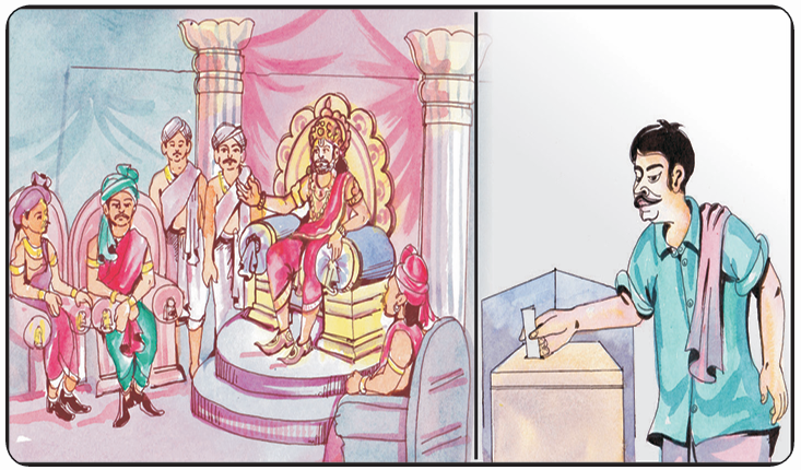 ರಾಜಪ್ರಭುತ್ವ: ಮೇಲಿನ ಕಥೆಯಲ್ಲಿ ಎರಡು ಬಗೆಯ ಆಡಳಿತ ವ್ಯವಸ್ಥೆಯನ್ನು ನಾವು ಗುರುತಿಸಬಹುದು. ಅದೇ ರಾಜಪ್ರಭುತ್ವ ಮತ್ತು ಪ್ರಜಾಪ್ರಭುತ್ವ.